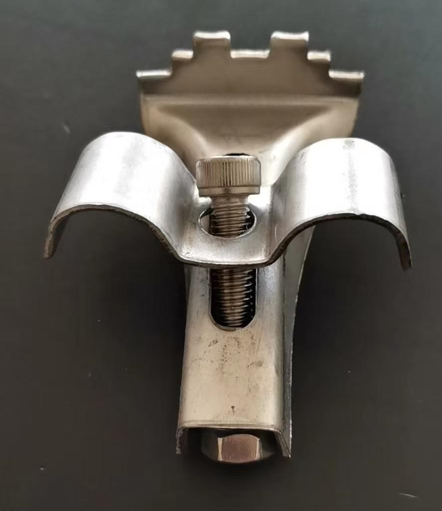 支撐抓件由齒形一面頂在鋼梁上,把手通過圓孔螺絲與M卡固定。