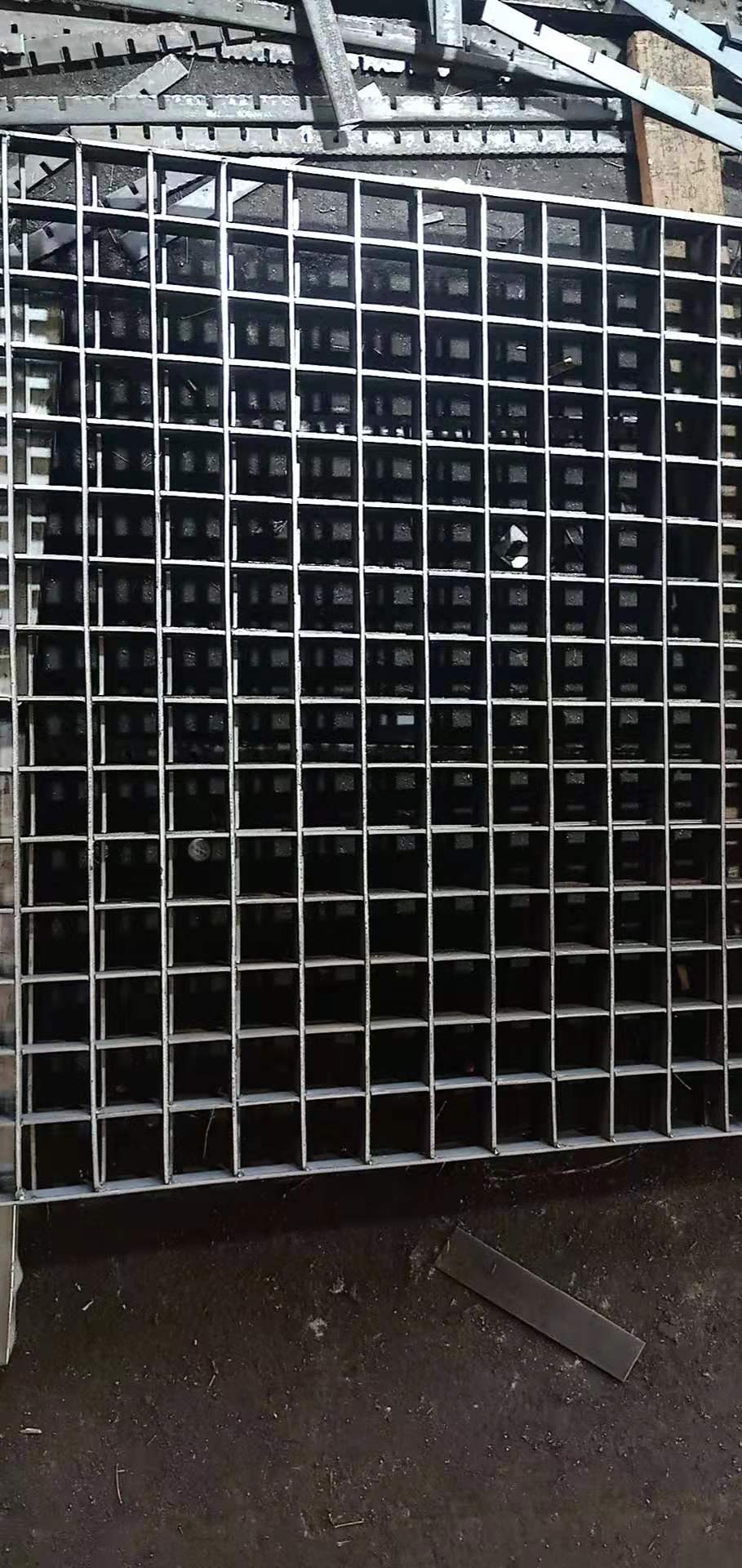 ?2.重載型對插鋼格板:是高扁鋼和橫桿扁鋼互相咬合、在1200噸的壓力下壓緊成型的一種鋼格板產(chǎn)品。它適用于跨距高承荷載場合。