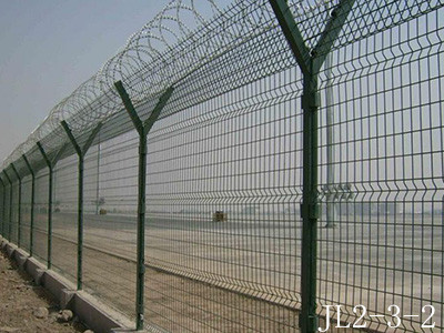 機場護(hù)欄網(wǎng)又稱作機場隔離柵“Y型防御護(hù)網(wǎng)”,是由V型支架立柱,加強型焊接片網(wǎng),防盜連接件和熱鍍鋅刀片刺網(wǎng)組成強度和防御性級別很高。近年來,被廣泛應(yīng)用在機場,軍事基地等高場所。